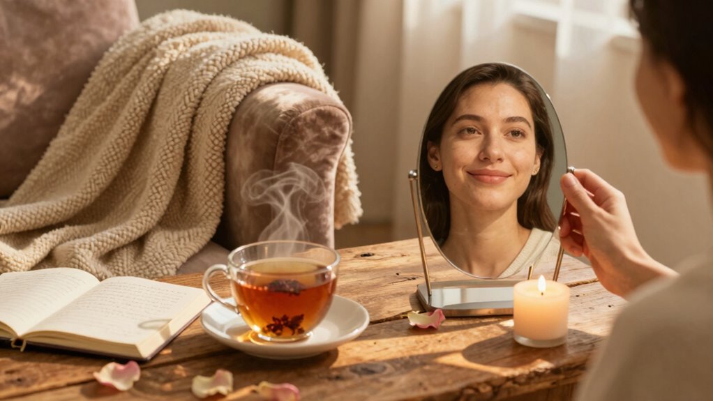 If you feel lonely during your self-love practices, acknowledge your feelings without judgment. Use this time to practice loneliness coping by focusing on your breath or journaling your thoughts. Building emotional resilience helps you embrace solitude as a gift rather than a burden. Remind yourself that these moments are opportunities for self-discovery and growth, strengthening your connection with yourself and fostering a sense of inner peace and acceptance.