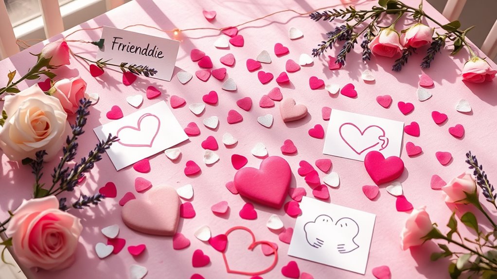 You can celebrate friends on Valentine’s Day by creating meaningful friendship rituals, like a movie night or coffee date, to show your appreciation. Personalized gestures, such as writing heartfelt notes or gifting something meaningful, make the day special. These acts strengthen your bond and make your friend feel valued. Embrace the opportunity to celebrate platonics love with genuine, thoughtful actions that highlight your unique friendship.