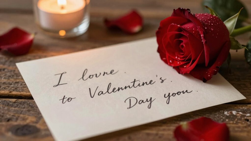 You should choose a handwritten note over a digital message for a more personal touch, especially on Valentine’s Day. Handwritten notes show effort and thoughtfulness, making your message more meaningful. Consider gift ideas like a small keepsake or a heartfelt letter paired with your note. Timing tips include sending it early in the day or during a special moment to make your gesture even more memorable and impactful.