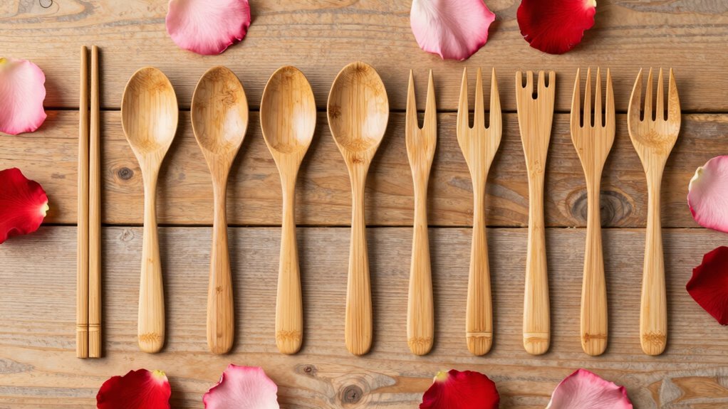 Choosing the perfect bamboo utensil set feels like selecting a heartfelt gift for someone special. I remember giving my partner a personalized heart-shaped cutting board, and her smile lit up the room—just like the warmth these eco-friendly utensils bring to your kitchen. With their durability and charm, these sets aren’t just practical—they’re a symbol of love that lasts. Trust me, your Valentine will cherish such thoughtful, sustainable gestures forever.