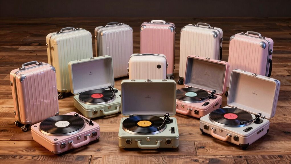 If you’re searching for the 15 best Bluetooth turntable suitcase gifts for 2026, I’ve got you covered. These stylish, portable options blend vintage charm with modern convenience like Bluetooth streaming, rechargeable batteries, and built-in speakers. They’re ideal for vinyl lovers, outdoor use, or anyone who appreciates retro design with high-quality sound. Keep exploring, and you’ll discover detailed choices that suit your style and budget.