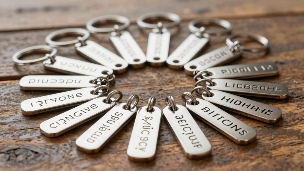 Think of a weather-resistant finish like a raincoat for your keychain—it’s your shield against the elements. Yes, many options are waterproof or weather-resistant, especially those made from durable materials like resin, stainless steel, or treated leather. These finishes protect your custom coordinates keychain from water, dirt, and everyday wear and tear. So, you can keep your special place close without worrying about weather ruining the charm.