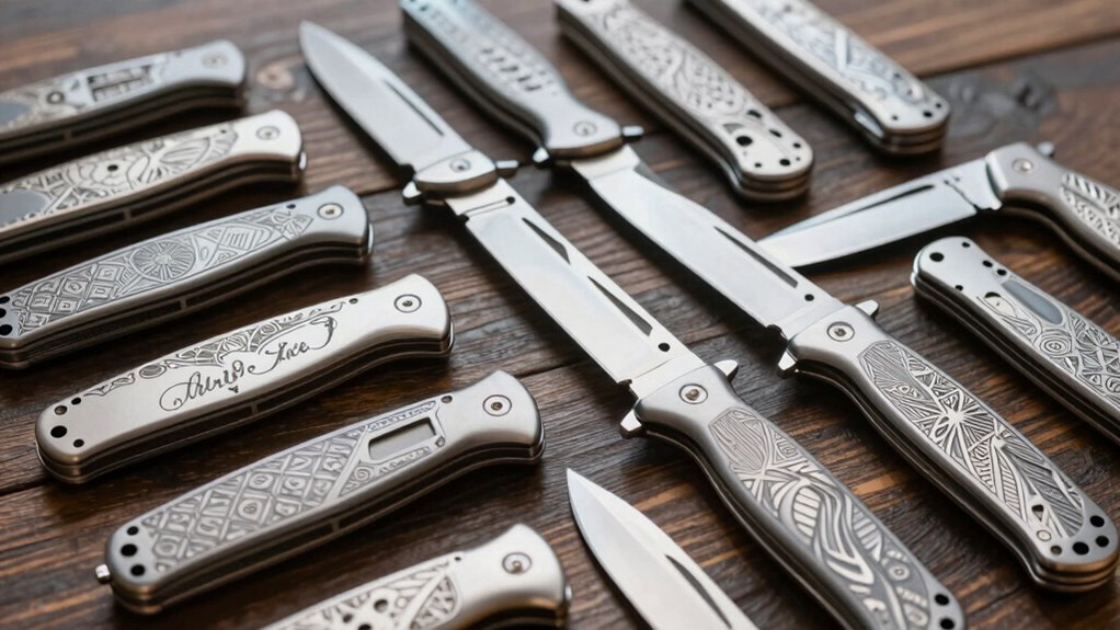 Engraved pocket knives can be suitable for outdoor or tactical use, but it depends on the knife’s build. I once used a high-quality engraved tactical knife during a camping trip, and it held up well under tough conditions. Just make certain the knife is made of durable materials like stainless steel or carbon steel, with a sturdy locking mechanism. Avoid delicate engravings in rough environments, as they can wear down quickly.