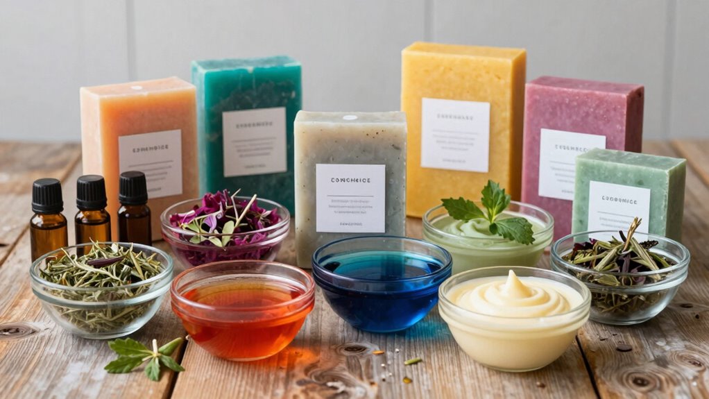 Did you know that over 60% of consumers prefer natural products? I’ve found that many soap making kits now include organic or natural ingredients, making them safer and more eco-friendly. These kits often feature essential oils, plant-based colorants, and organic bases. So, if you’re looking for a healthier option, check the product details—most brands now prioritize natural ingredients, giving you peace of mind while creating beautiful, chemical-free soaps.